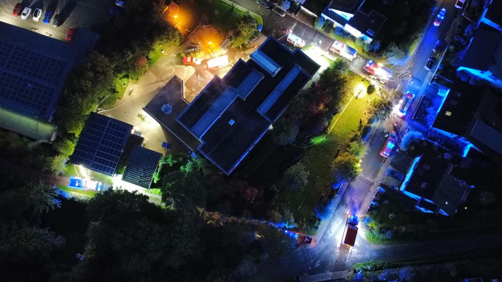 Die große gemeinsame Übung fand am Samstagabend in der Grundschule in Hallgarten statt. Als angenommene Lage war ein Feuer im Sondergebäude mit Menschenleben in Gefahr vorgegeben. Insgesamt waren 20 Personen noch im Gebäude gemeldet, davon 16 Erwachsene und 4 Kinder, die teils durch Übungspuppen und echte Darsteller dargestellt wurden. Jede Jugendfeuerwehr hat einen Gebäudeteil zugewiesen bekommen. Mehrere Angriffstrupps mit entsprechenden Atemschutzattrappen und mit Schläuchen gingen in das Gebäude zur Menschenrettung und Brandbekämpfung vor. Nachdem alle vermissten Personen von den Jugendlichen Angriffstrupps gerettet waren und das Feuer gelöscht war wurden sämtliche Räume mit mehreren Hochleistungslüftern vom Rauch frei gemacht. Gäste bei der Übung der Nachwuchskräfte waren Bürgermeister Carsten Sinß, Stadtbrandinspektor Christian Ringel und sein Stellvertreter Ingo Platz. „Tolle Jugendarbeit, die hier in allen vier Jugendfeuerwehren im Ehrenamt geleistet wird, und vor allem schön mitzuerleben, wie sie ihre Aufgaben der Menschenrettung und Brandbekämpfung bei so einem angenommenen Brand mit fast kompletter Verrauchung im gesamten Schulgebäude wie die Erwachsenen schon abarbeiten können“, bemerkte Carsten Sinß im Gespräch mit den beiden Stadtbrandinspektoren. Auch Christian Ringel lobte den Ablauf und meinte „Man konnte bei den Jugendlichen die hohe Motivation und den guten Ausbildungsstand erkennen, und das zeigt mir mit wie viel Engagement alle Ausbilder die Jugendarbeit betreiben“.
