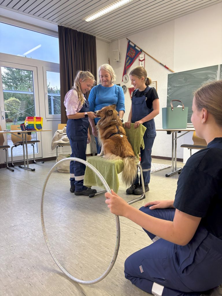 Heute hatten wir ganz besonderen Besuch auf vier Pfoten in unserem Übungsdienst. Zwei Therapiehunde in Ausbildung kamen, um das Arbeiten mit Kindern und Jugendlichen zu üben.