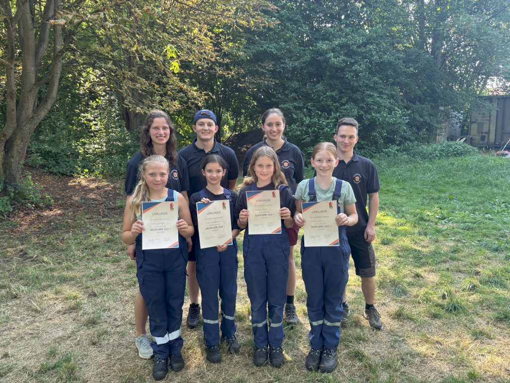 Weiterlesen: Zeltlager 2025Nachdem alle Zelte aufgebaut und eingerichtet waren stand der erste Programmpunkt an. Ein Großteil der Jugendlichen stellte sein Feuerwehrwissen unter Beweis und absolvierte das erste Abzeichen der Jugendfeuerwehr, die Jugendflamme Stufe 1. Dabei mussten verschiedene feuerwehrtechnische Aufgaben erledigt werden und Sportlichkeit und Teamfähigkeit gezeigt werden. Die Jugendlichen, die das Abzeichen bereits absolviert hatten, traten in zwei Gruppen bei einem interaktiven Feuerwehrquiz gegeneinander an. Das Siegerteam erhielt Eisgutscheine.
