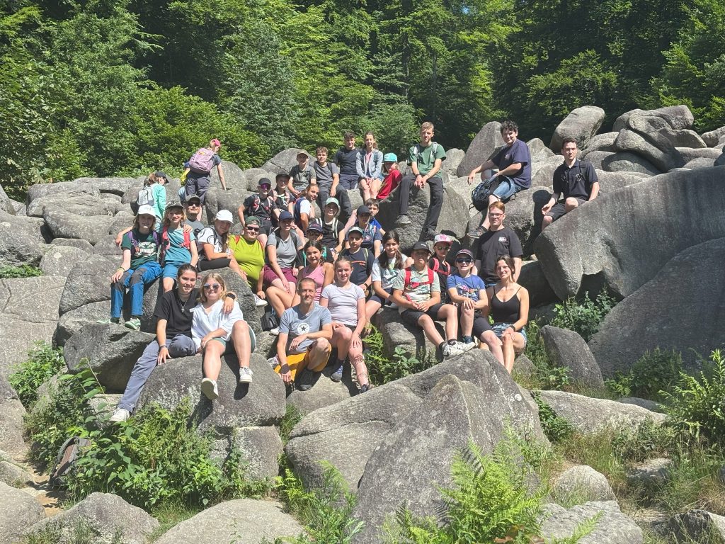 Am zweiten Tag haben wir einen Ausflug ins Felsenmeer gemacht. Bei bestem Wetter konnte der Hang voller Felsen erklommen werden. Nach einem gemeinsamen Picknick konnten die Jugendlichen entweder wieder nach unten kraxeln oder gemütlich den Wanderweg herunter laufen. Am Nachmittag kühlten wir uns noch im Bürstadter Freibad ab.
